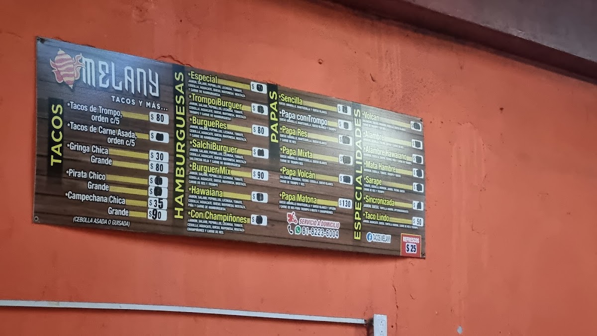 Welcome to Tacos Melany, a culinary gem nestled in Monterrey, Mexico. Located at Bachilleres 106, this vibrant eatery specializes in mouthwatering tacos that epitomize comfort food. The menu showcases an irresistible selection, with the trompo tacos and carne asada tacos standing out for their rich, savory flavors. Customers rave about the delicious dishes and the distinct flavor of the homemade green sauce that perfectly complements each bite.